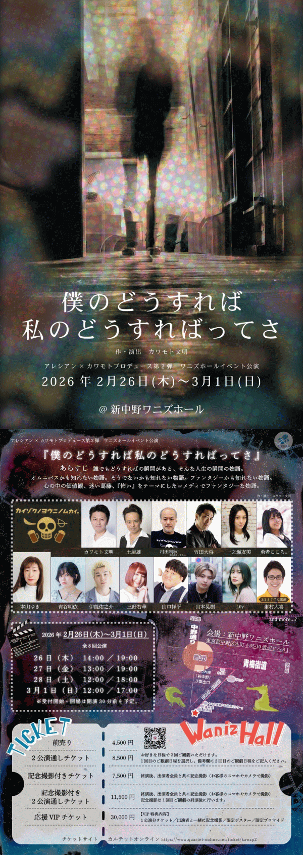 | 只今募集中の 公演日程はこちら https://wanizhall.net/0_0.html 面談申し込み受付中 |