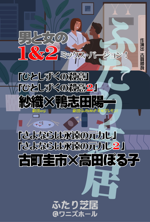 まずは一度お会いしましょう。 ご連絡下さい! 「ふたり芝居/面談希望」と書いて wanizhall@gmail.com 迄 ご応募 お待ちしています |