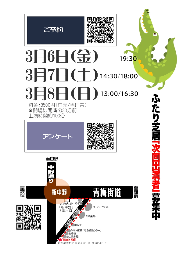 | 只今募集中の 公演日程はこちら https://wanizhall.net/0_0.html 面談申し込み受付中 |