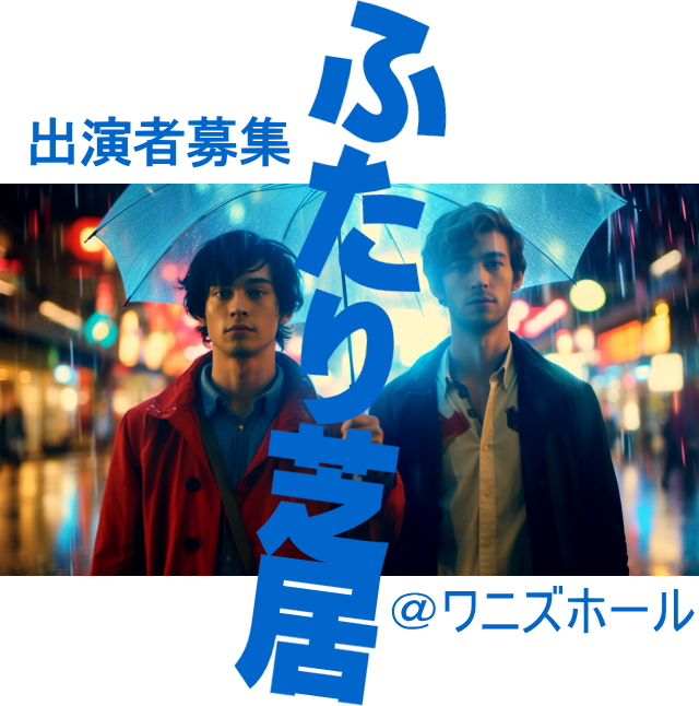 まずは一度お会いしましょう。 ご連絡下さい! 「ふたり芝居/面談希望」と書いて wanizhall@gmail.com 迄 ご応募 お待ちしています |
